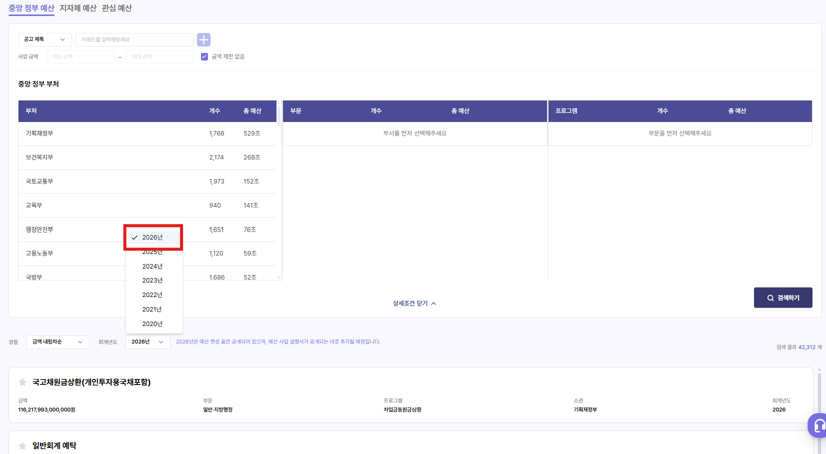 - 중앙부처는 물론, 기초지자체까지 포함된 2026년도 확정 예산안을 한눈에 확인할 수 있습니다.
