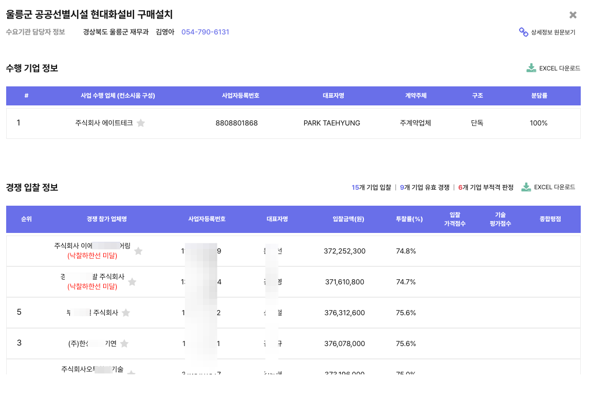 특히, 과거 발주 이력을 검토한 결과 여러 기업이 해당 사업을 수주한 점을 확인하면서, 해당 기관이 사업을 공정하게 발주하고 있다는 신뢰를 얻을 수 있었습니다. 이는 에이트테크가 전략적으로 중요한 의사결정을 내리고 입찰에 참여하는 데 큰 도움이 되었습니다.