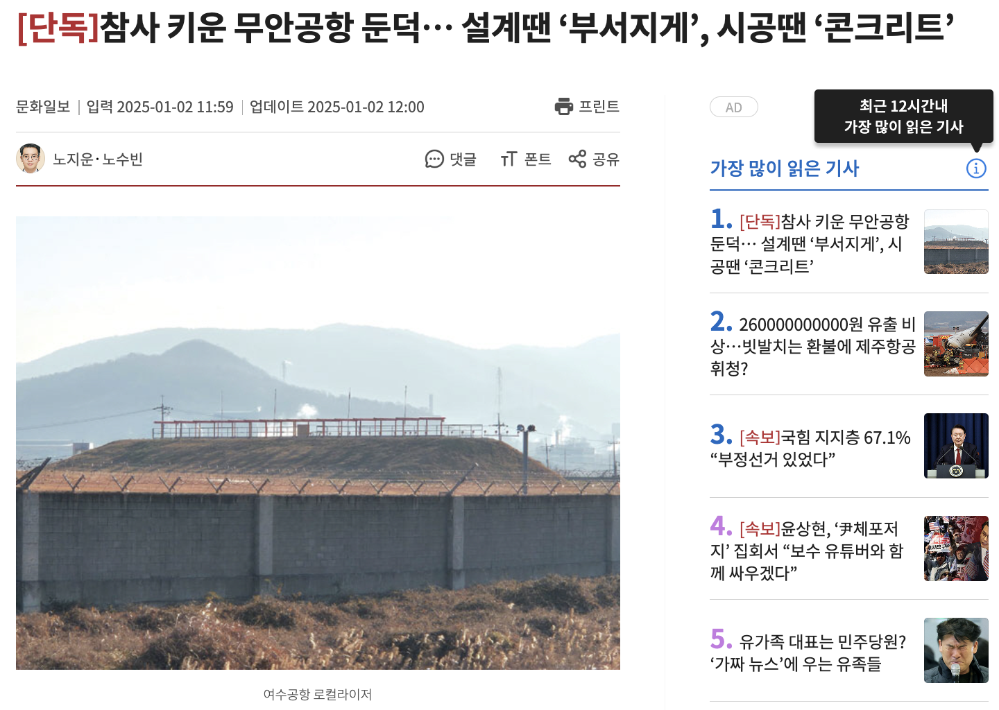 전 세계 많은 이들의 가슴을 아프게 했던 '12·29 무안공항 제주항공 참사'와 관련해, 국내외 전문가들이 공항 둔덕 문제를 지적하고 있습니다.
