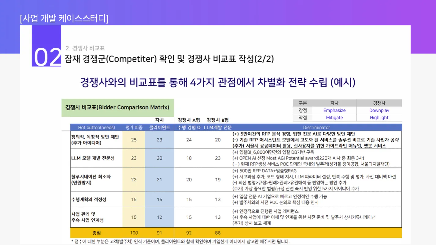 결국, 효율적인 사전 영업 전략과 데이터 기반 의사결정을 통해 어썸스쿨은 약점을 보완하며 공공 사업 분야에서의 경쟁력을 더욱 강화할 수 있었습니다.