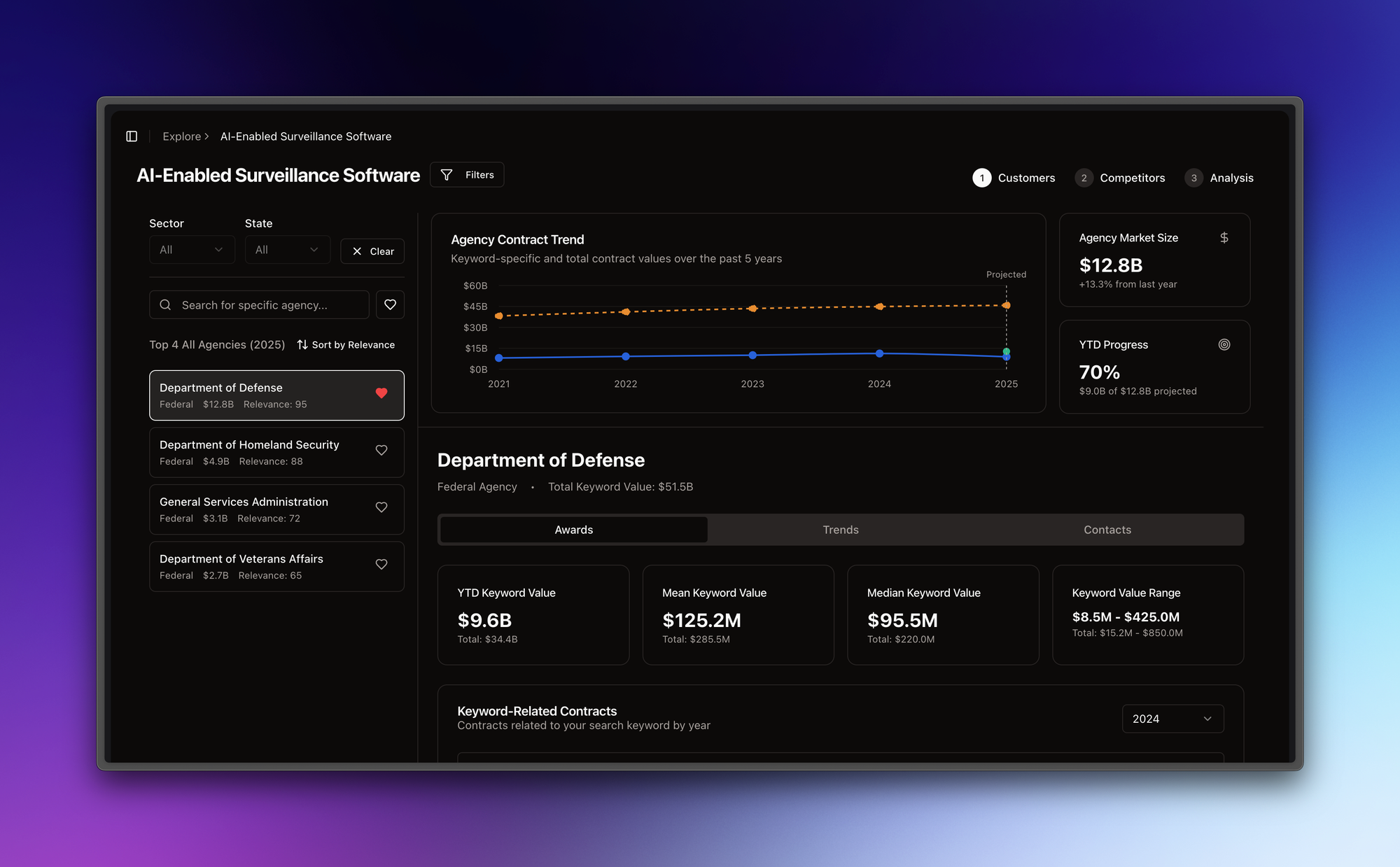 이러한 인사이트를 바탕으로, 클라이원트는 미국 시장에서의 접근을 조금 다르게 설계했습니다. 기존의 RFP 응답 중심 툴에 더해, Pre-RFP Capture Tool이라는 새로운 방향성을 정의하고, RFP가 게시되기 전 입찰 트렌드를 분석하고 사전 영업을 지원하는 솔루션으로 소폭 피봇하게 되었습니다.