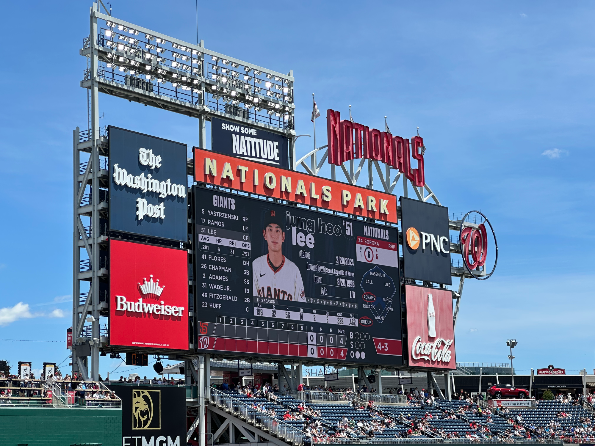 이정후가 활약한 워싱턴 내셔널스 vs. 샌프란시스코 자이언츠 경기! 3-2로 내셔널스가 졌음