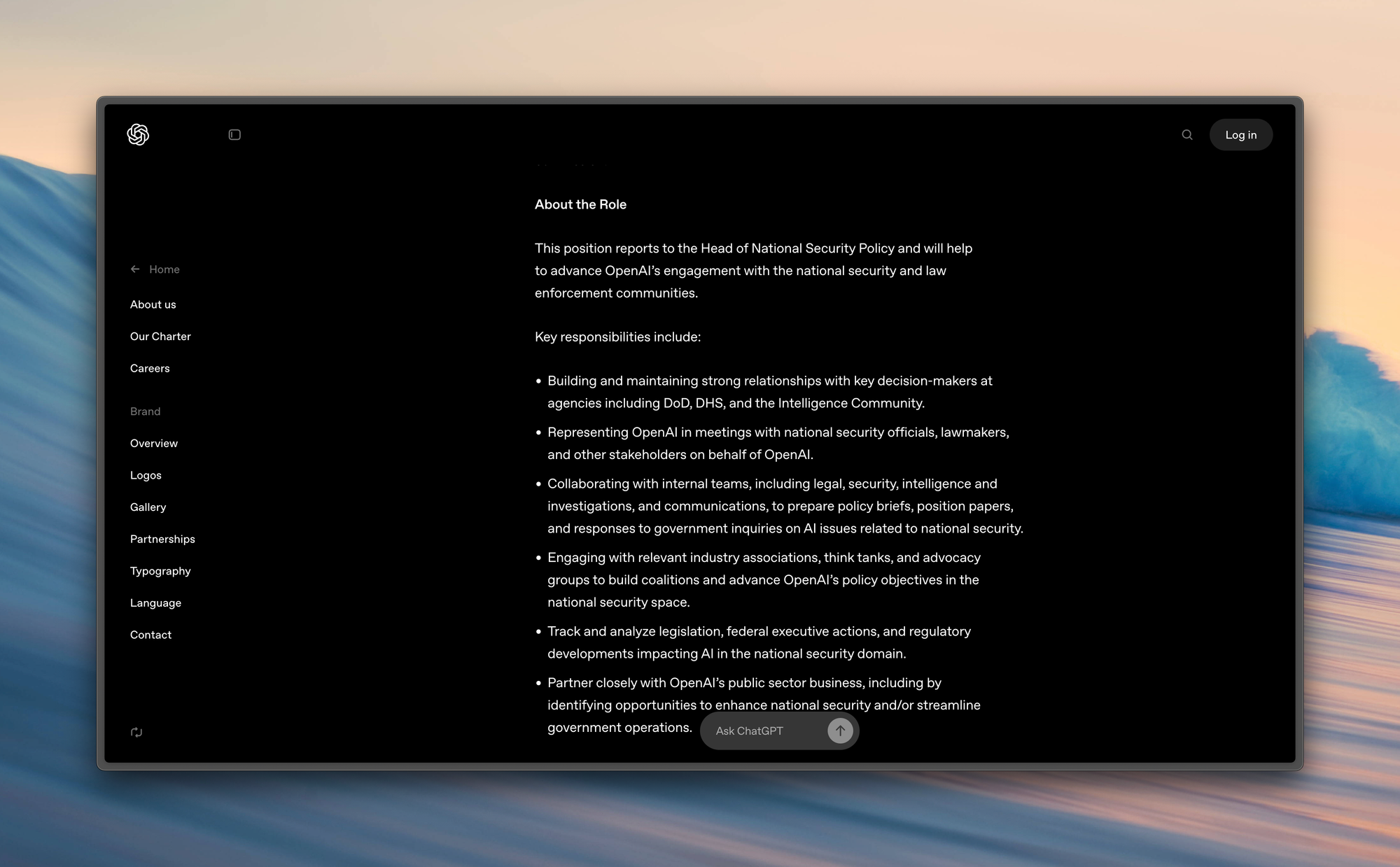 OpenAI도 최근에 D.C. 사무실을 공격적으로 확장하고 있는데요. 우연히 채용 공고를 보았는데, 특히 미국 국방부(DoD, DHS)와 정보기관(Intelligence Community — CIA, FBI, NSA 등)과의 긴밀한 협업을 강조하고 있었습니다.