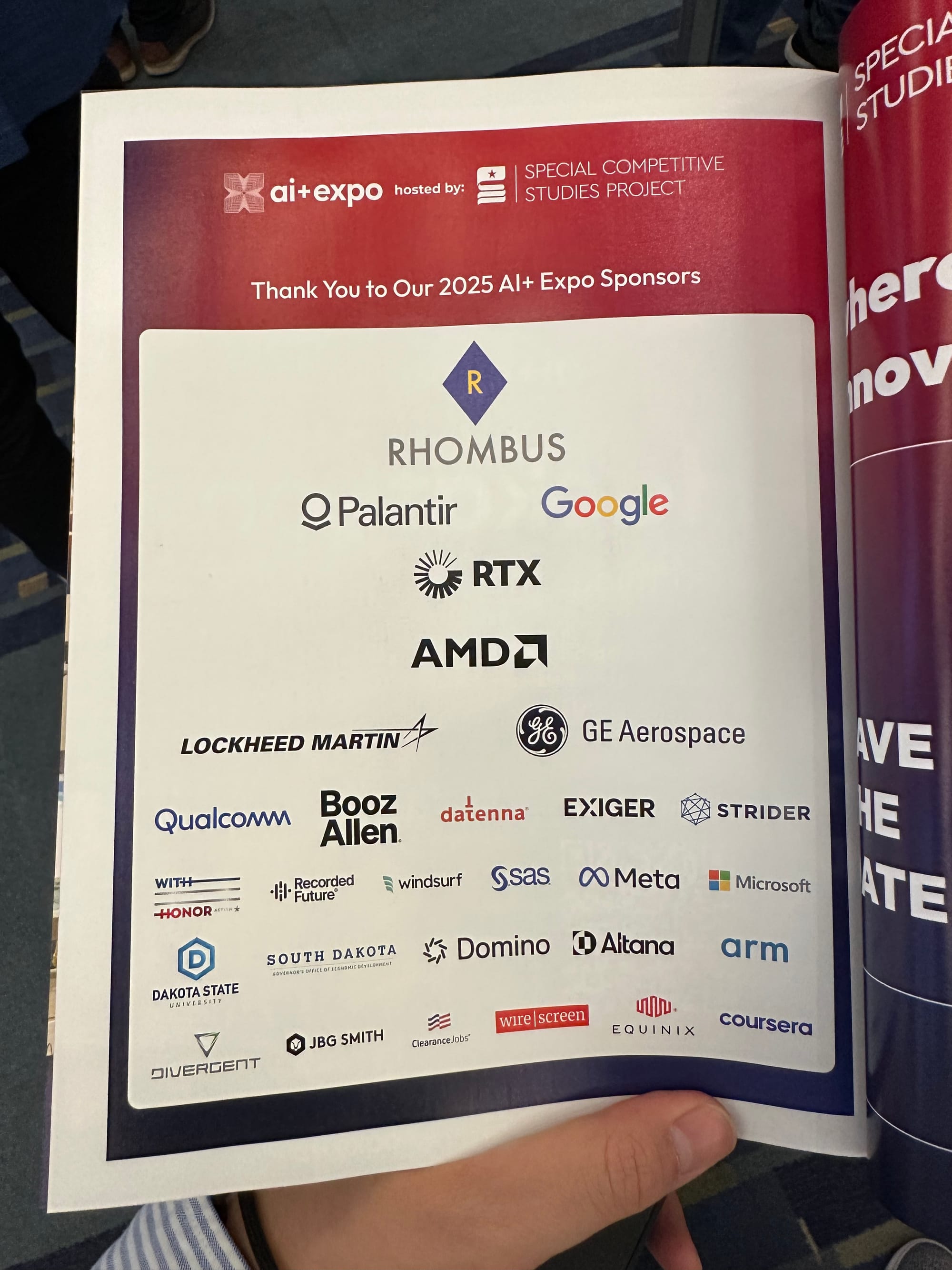 워싱턴 D.C. 한복판에서 AI 컨퍼런스가 열렸습니다. 그런데 그 스폰서들이 팔란티어, 구글, 마이크로소프트, 록히드마틴, ARM, 테슬라 등, 내로라하는 테크 기업들이었습니다. 이런 행사가 집 근처에서 열리는데, 그냥 지나칠 수 없었습니다.