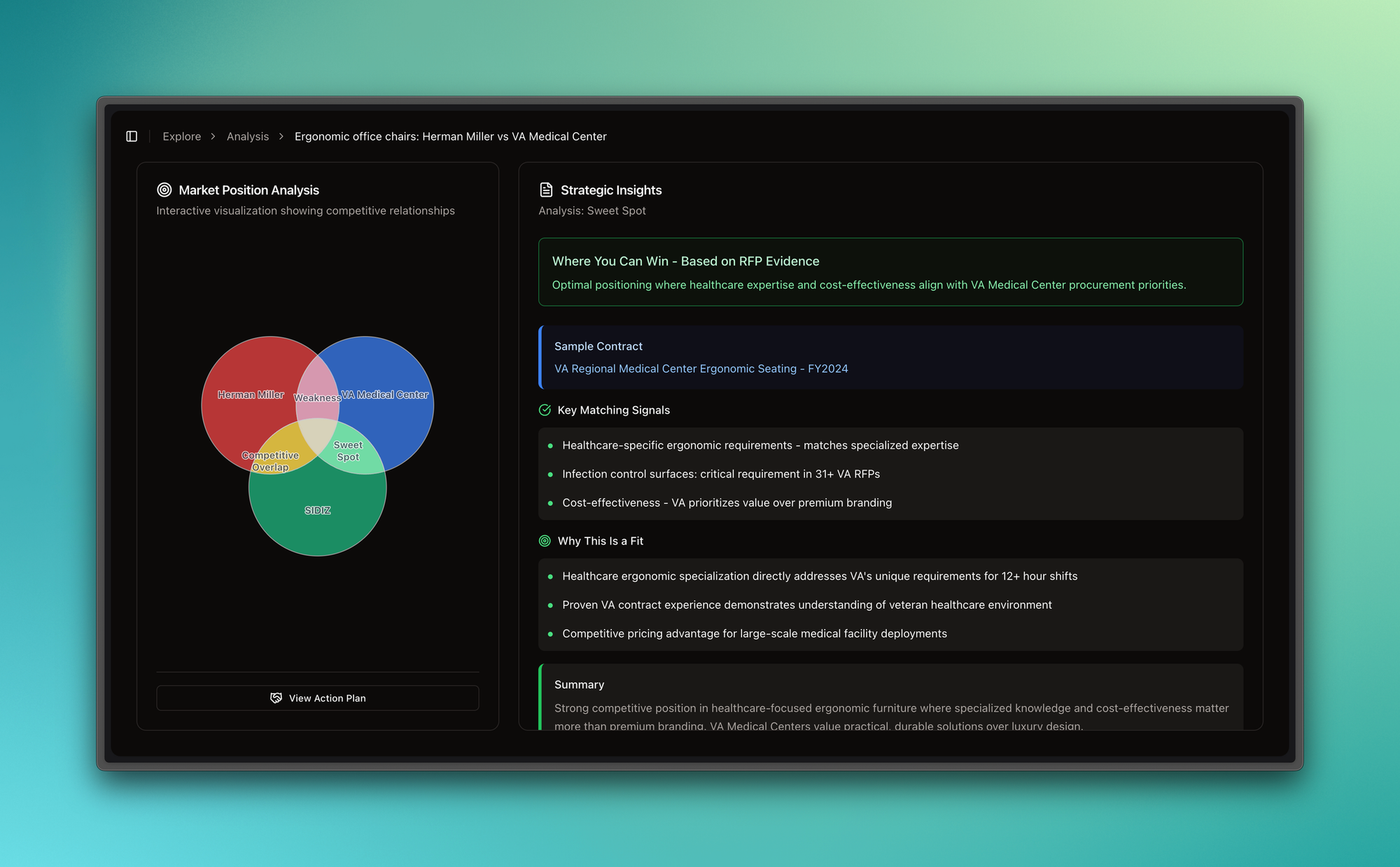 고객사들이 입찰을 수주하기 위해 경쟁사를 분석하고 관계를 쌓는 것처럼, 저희 역시 미국 입찰 생태계 속에서 어떤 기업이 우리의 고객사가 될 수 있을지, 경쟁사는 어떤 마케팅이나 제품 전략으로 시장에 어필하고 있는지, 그리고 사업적으로 시너지를 낼 수 있는 파트너는 누구인지 등을 파악해 나가는 단계에 있습니다.