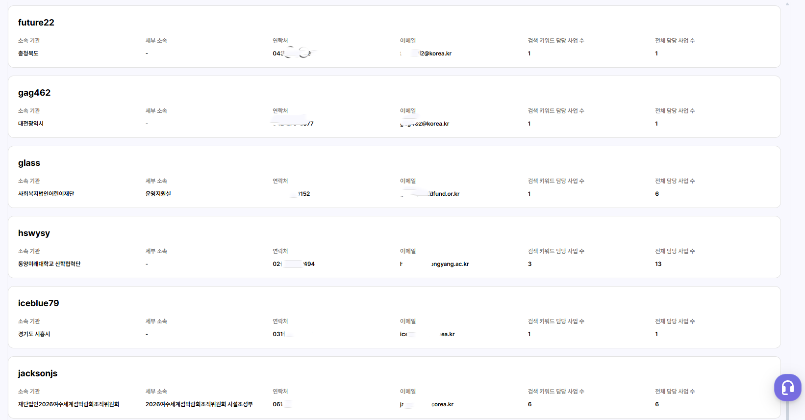 🔍 원하는 키워드만 입력하면 간편하게 관련 담당자 정보를 검색할 수 있습니다.