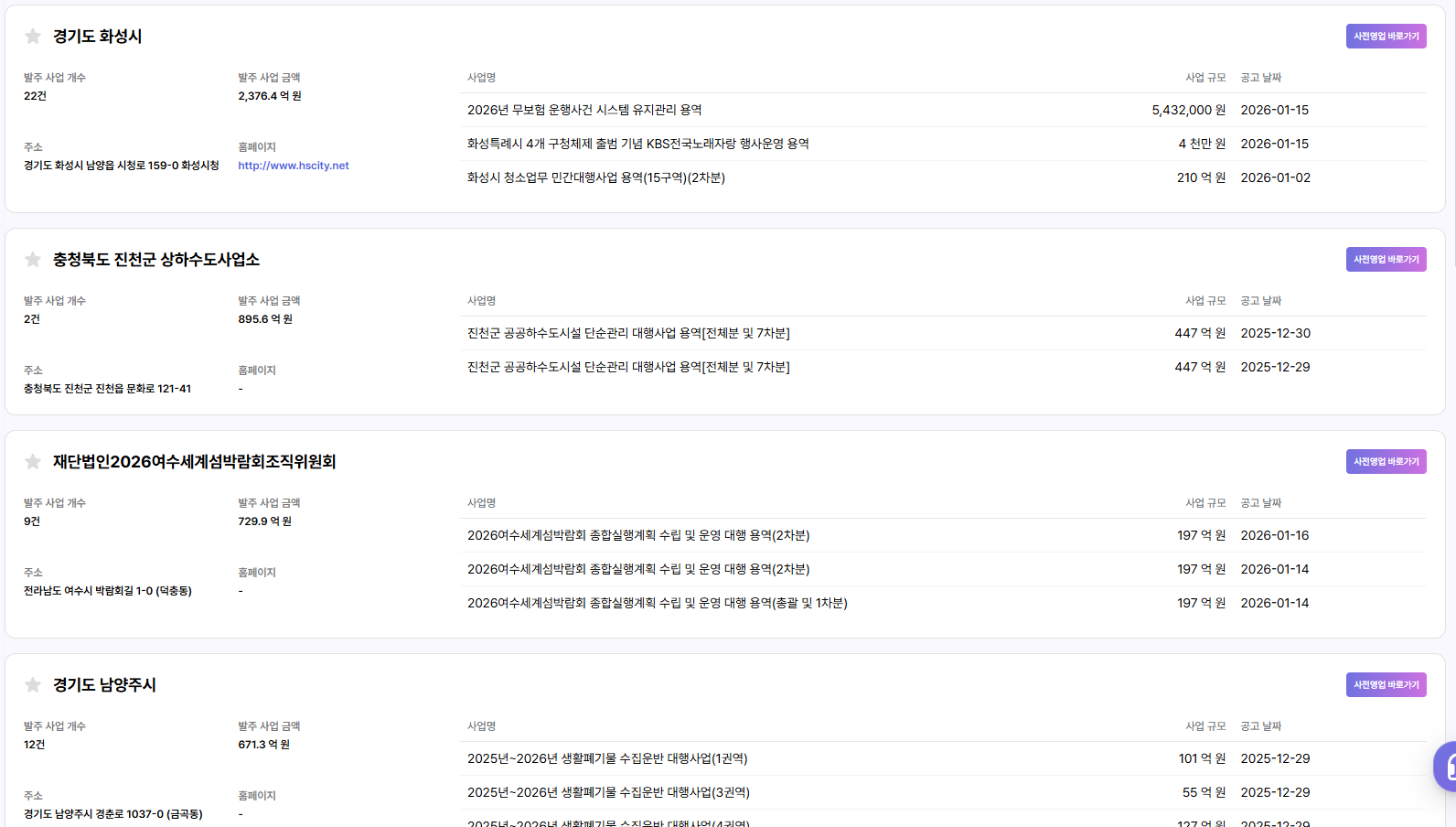 - 예를 들어, 특정 기관에서 유사 공고를 반복적으로 발주한 경우, 발주 계획과 사전 규격 사이의 간격을 분석해 올해의 공고 시점을 추정할 수 있습니다. 이를 통해 사전 영업 전략을 훨씬 정교하게 다듬을 수 있습니다.