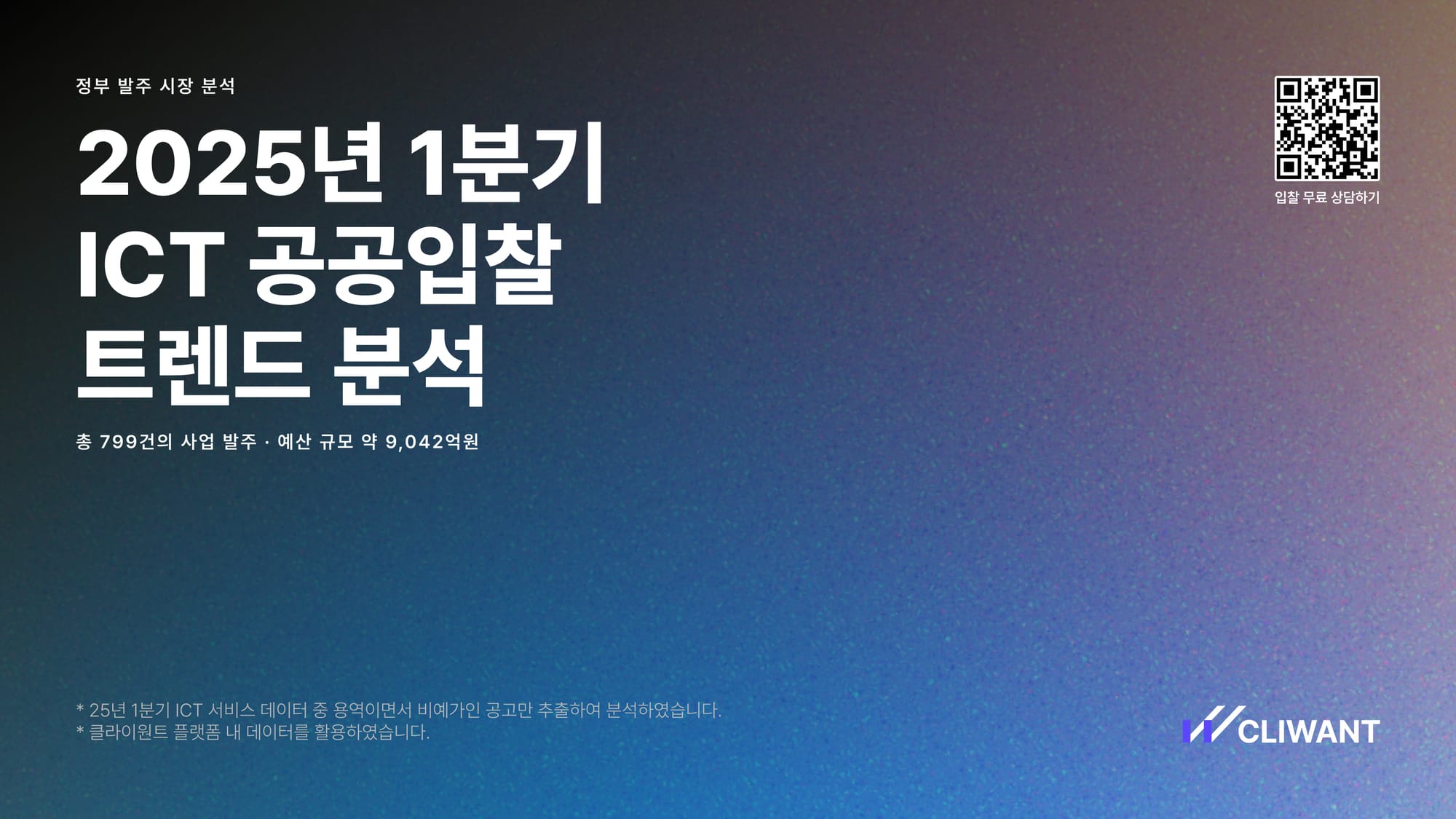 클라이원트는 자사 플랫폼에 축적된 데이터를 바탕으로 총 799건의 공공입찰을 분석했으며, "어떤 분야에 예산이 몰렸고, 누가 수주했는지", 그리고 "2025년 ICT 시장에서 주목할 전략은 무엇인지"를 정리했습니다.