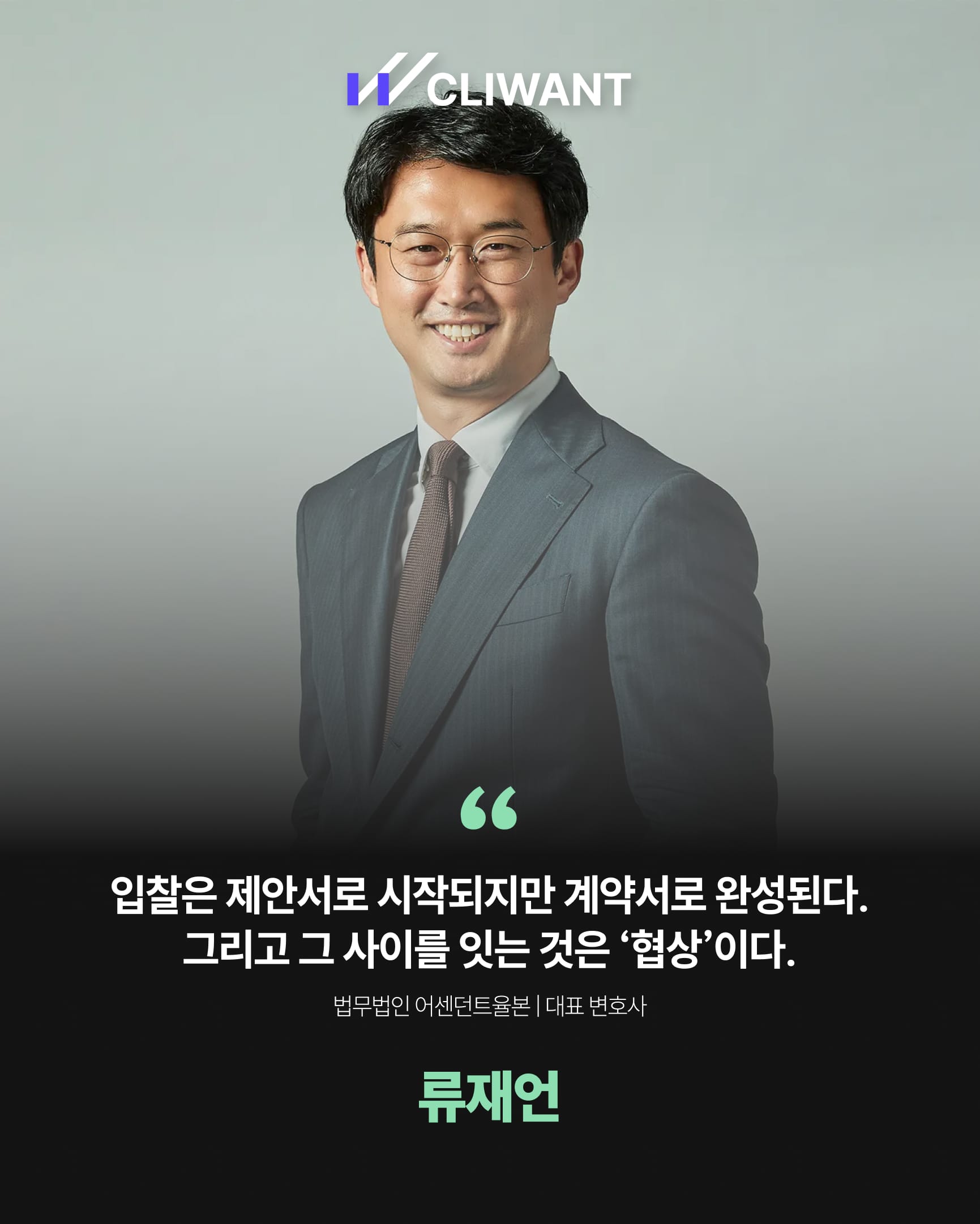 그렇기에 계약서는 입찰의 종착점이 아닌, 새로운 출발점이며, 제안 – 협상 – 계약 – 실행이라는 한 줄기 흐름 안에 반드시 전략적으로 통합되어야 한다는 것이 류재언 변호사의 철학입니다.
