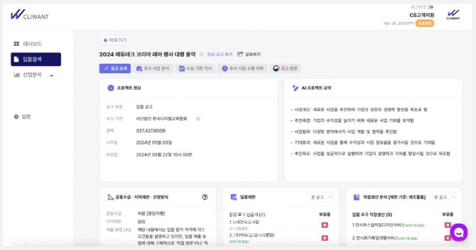 한국PCO협회가 입찰 공고상 불리한 독소조항을 찾아주는 ‘공공 입찰 제안요청서 AI 리스크 분석’ 베타 서비스를 시작했다. 협회는 3일 AI 기반 입찰 제안요청서(RFP) 분석 솔루션을 제공하는 스타트업 ‘클리이원트’(Cliwant)와 각종 행사 대행 입찰 공고에 포함된 불공정 조항을 검색하는 AI 서비스를 제공한다고 밝혔다.