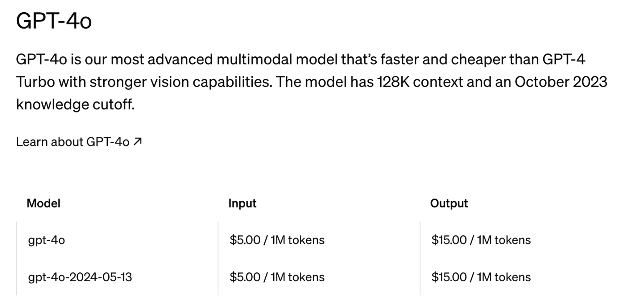 대규모 언어 모델(Large Language Model, LLM)은 대용량 데이터를 기반으로 사전 학습된 딥러닝 모델로, 종합적 추론이 가능하여 다양한 영역에서 활용됩니다. 주요 LLM으로는 GPT, Gemini, Claude, LLaMA, PaLM 등이 있으며, 같은 모델이라도 버전에 따라 성능과 가격이 다릅니다. 예를 들어, OpenAI의 경우 아래와 같이 가격이 책정되어 있습니다.