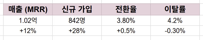 "3월: 신규 캠페인 성공적 안착 가입자 전월 대비 28% 증가, 목표 MRR 첫 1억 돌파"