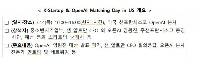 미국 본사서 'K스타트업과 매칭 데이' 낙점...중기부·오픈AI 공동 지원 최종 10곳도 뽑혀
