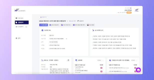 제가 10여 년간 입찰 시장에서 일한 경험을 바탕으로 도메인 지식을 프로그램화했고, 여기에 AI를 결합했죠. AI가 RFP의 문맥을 이해하고 정확한 정보를 추출해내죠. 결과적으로 기업들은 파일을 일일이 다운로드 받지 않아도 되고, 클라이원트 AI가 그 회사의 역량과 일치하고 수주 확률이 높은 입찰 정보를 매칭해줍니다. 이렇게 하면 기업들이 시간과 노력을 크게 절약할 수 있고, 더 효율적으로 입찰에 참여할 수 있어요.”