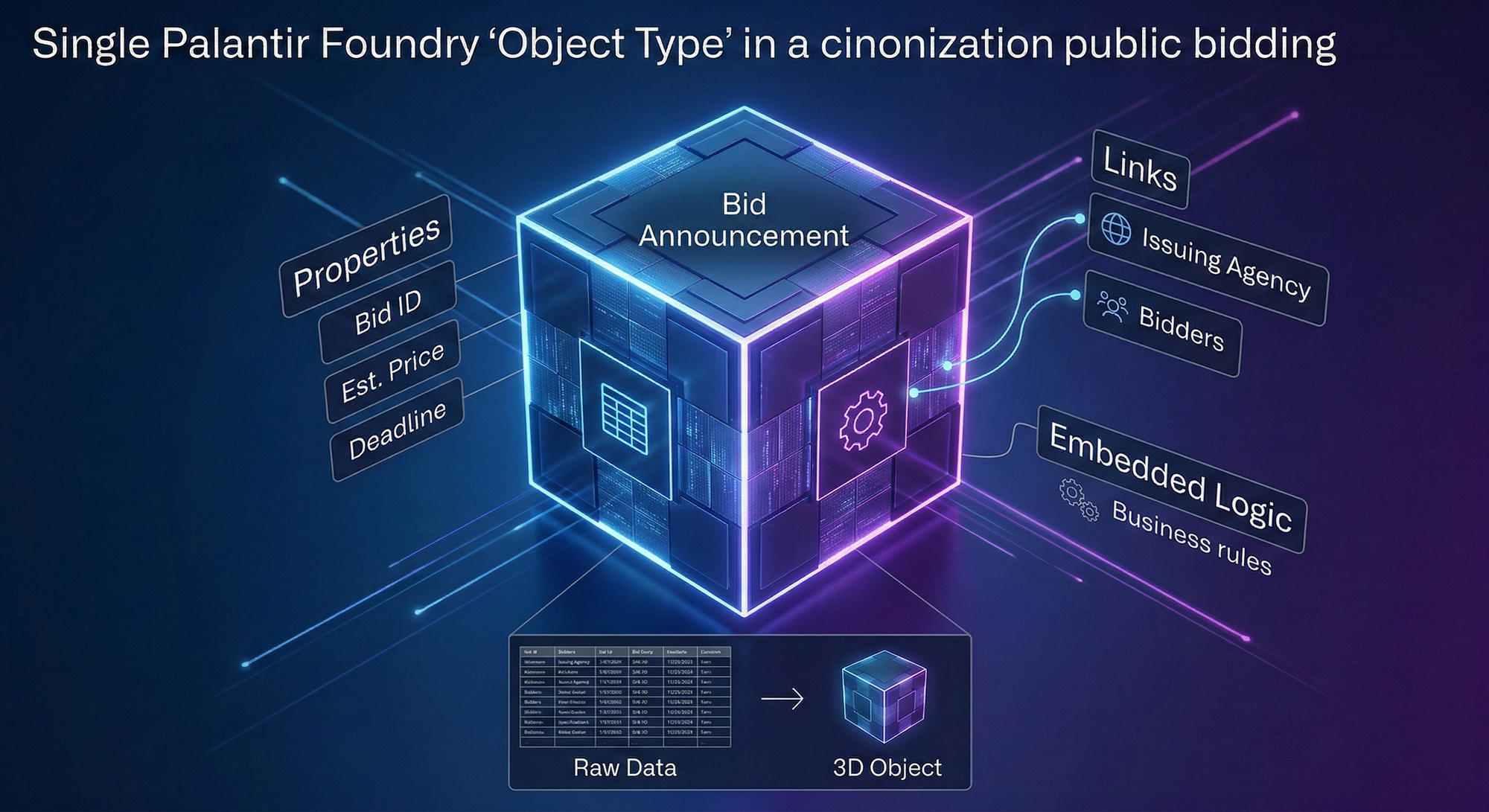 이 운영 레이어는 Object Type, Link Type, Action Type 세 가지로 구성된다. 각각 무엇을 담당하고, 실제 데이터에 적용하면 어떤 모양이 되는지 공공입찰 모델링 사례를 통해 풀어본다.