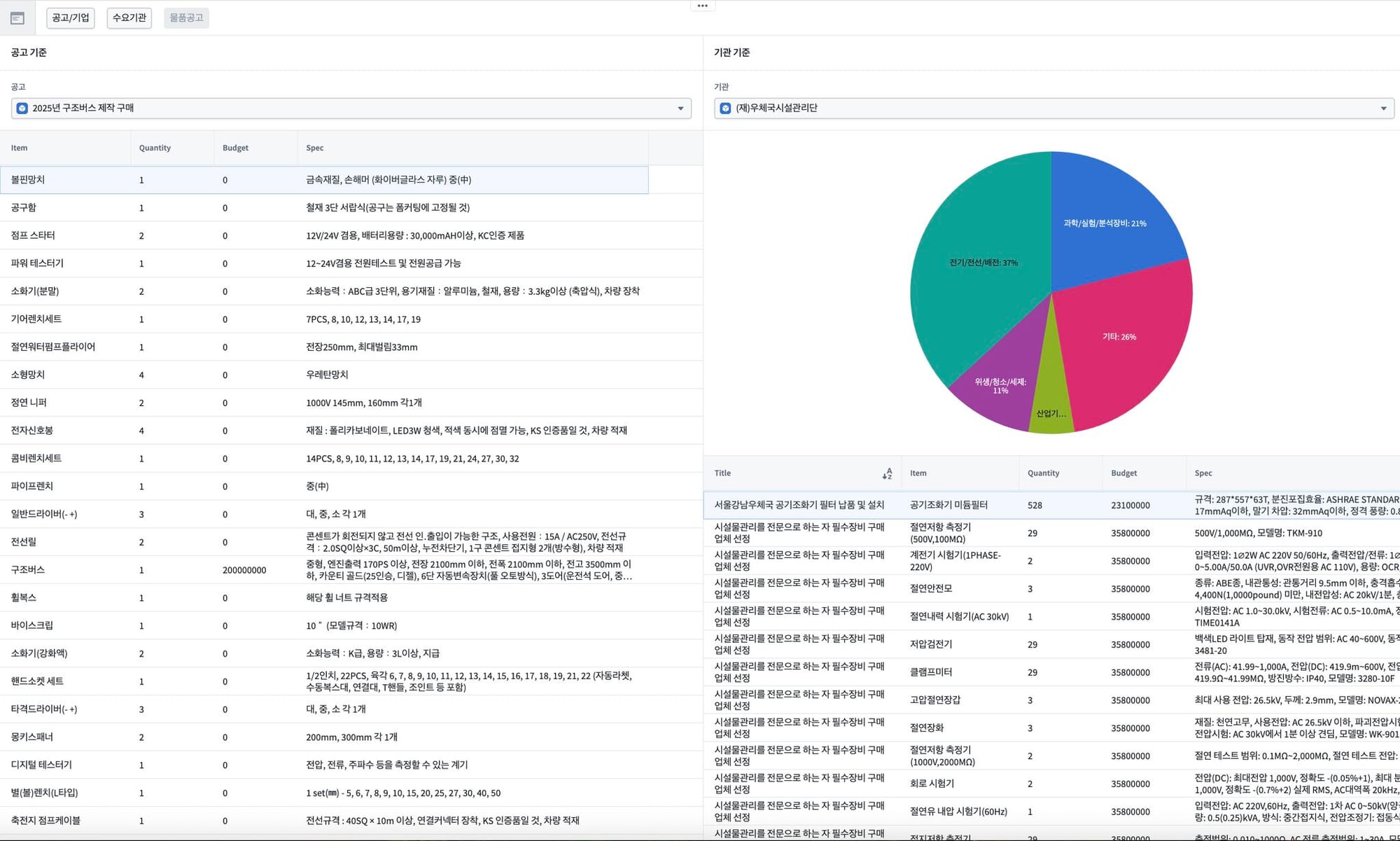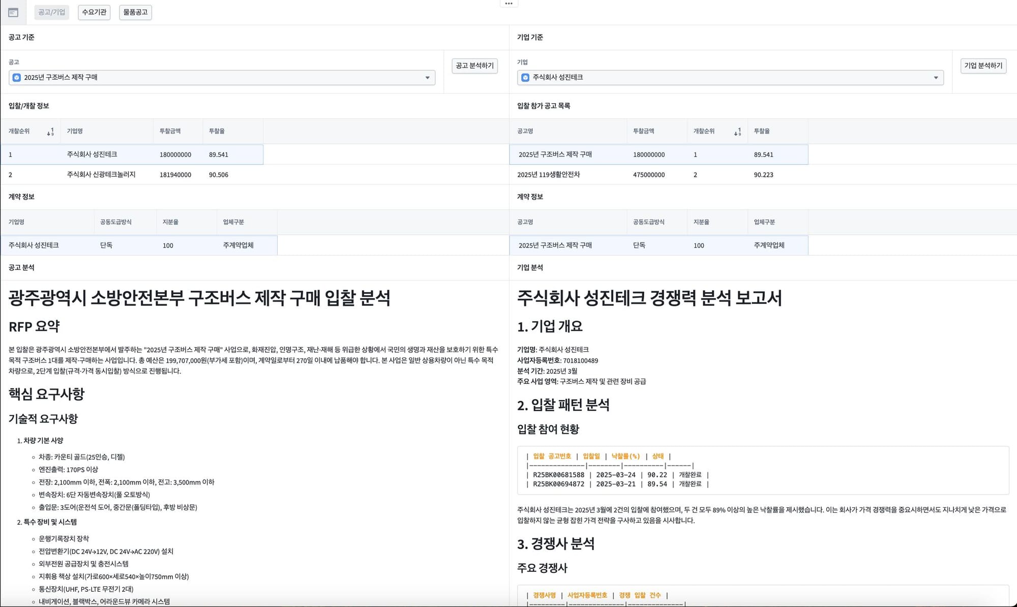예를 들어 "특정 기관이 발행한 공고의 RFP에서 구매 물품을 추출해서 저장해"라고 하면 바로 처리가 진행 되는 방식, 저장된 데이터를 기반으로 어떤 물품을 가장 많이 구매했는지 대시보드로 만드는 것도 금방이었다.