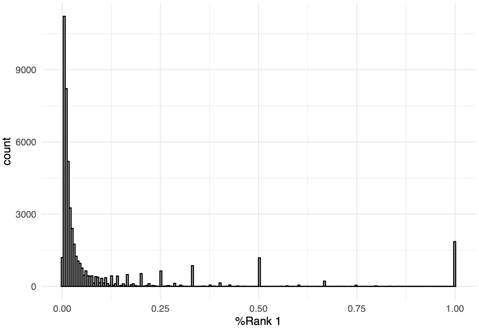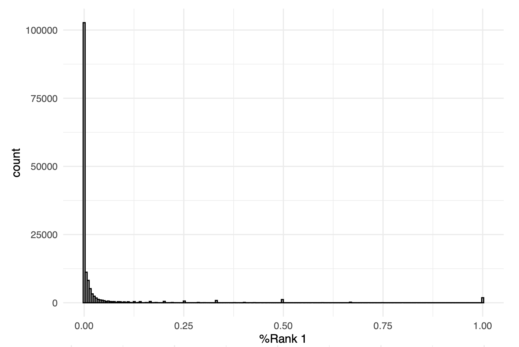 15만 개 기업의 복수예가 수주 성공률 분포를 나타낸 그래프이며, 대부분의 기업이 수주 성공률 0%에 몰려 있음을 확인할 수 있음.