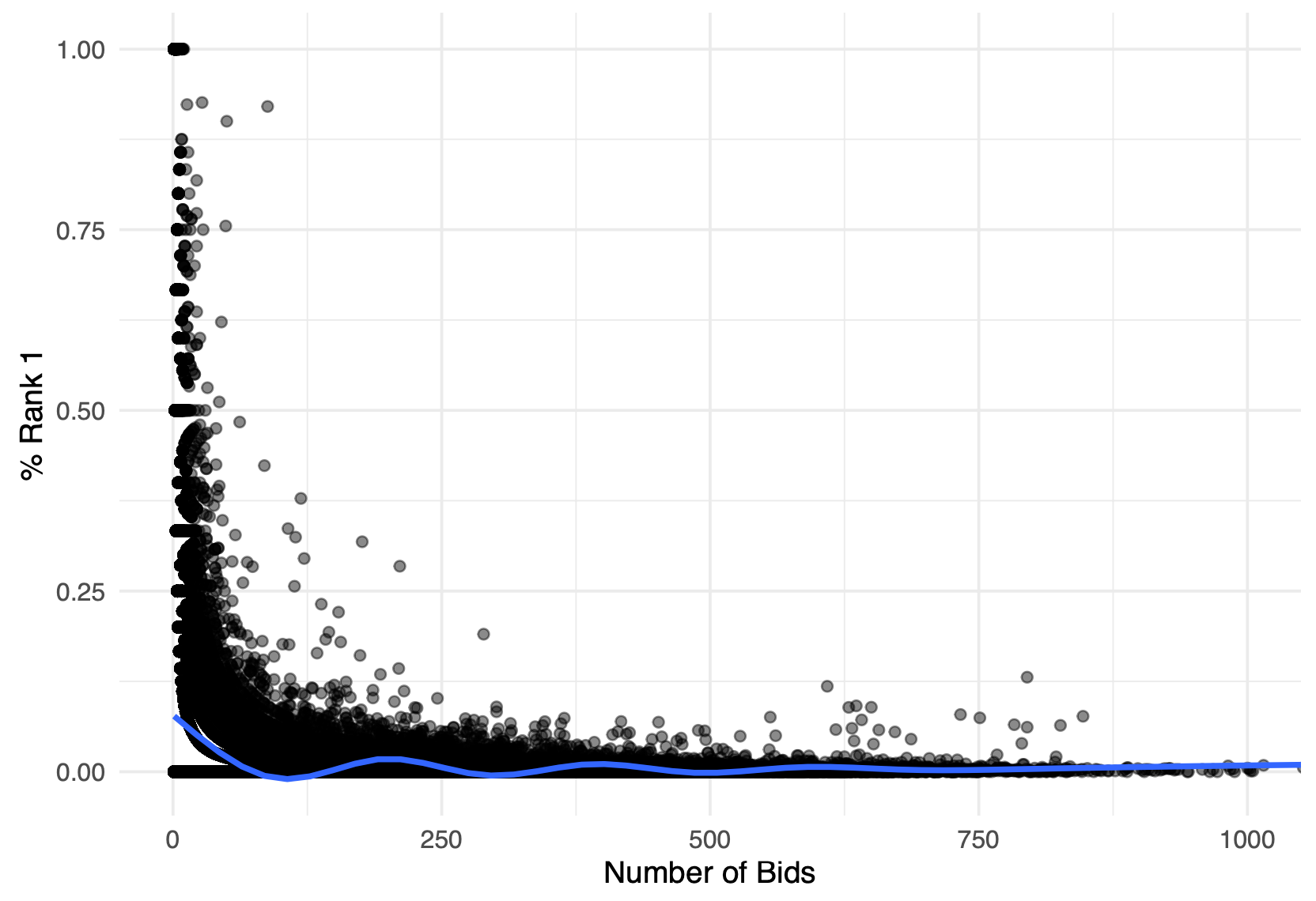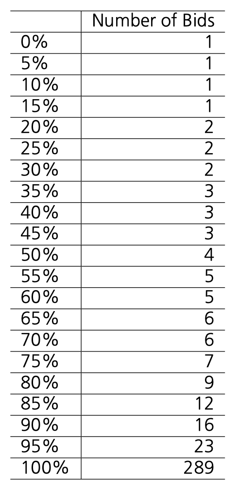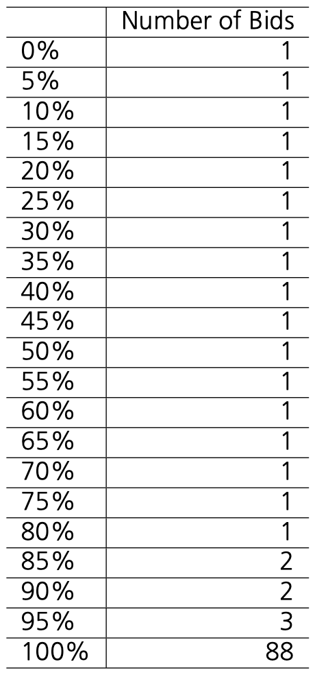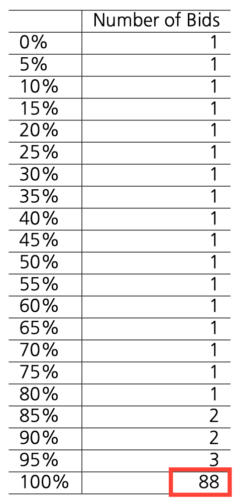 즉, 복수예가 입찰 성공에는 본질적으로 랜덤 요소가 작용하기 때문에, 입찰 횟수가 적을 경우 초반 몇 번의 입찰에서 운 좋게 성공하면 수주 성공률이 높아 보이는 착시 효과가 발생한 것입니다.