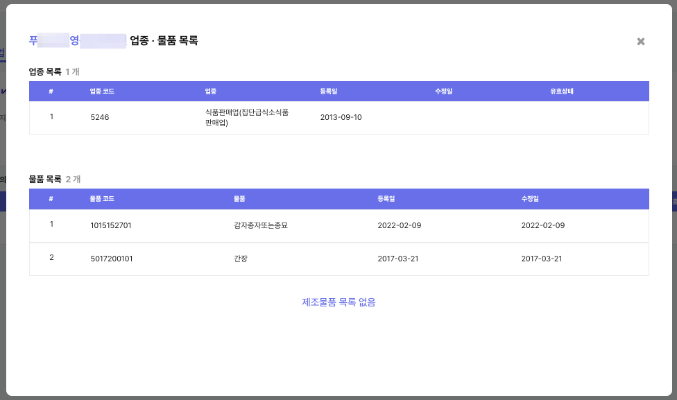 혹시 몰라서 클라이원트 내에서 이 기업이 특별한 업종이나 물품 인증서를 보유하고 있는지 확인해봤습니다. 다만, 해당 업계의 전문가가 아니다 보니 해당 인증서(감자 종자나 종묘 등)의 가치나 희소성을 정확히 판단하기는 어려웠습니다.