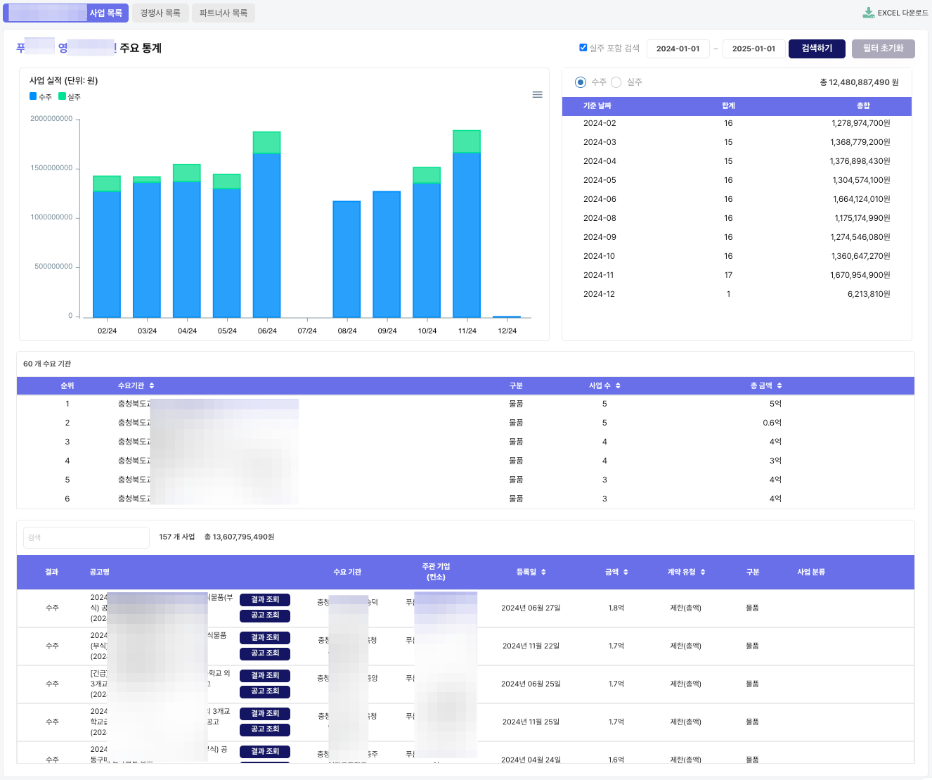 - 제외 기준: 투찰 금액 또는 예산 금액이 공란인 공고는 제외