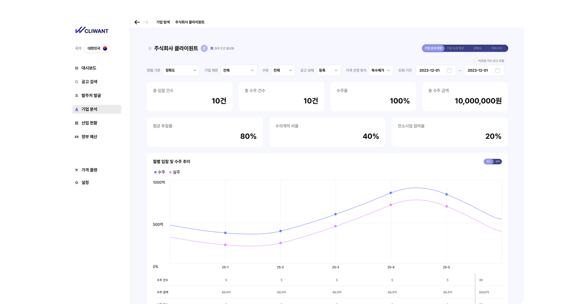 클라이원트는 OpenAI 협업 스타트업으로 선정된 국내 대표 AI 공공 조달 서비스입니다. 그동안은 민간 기업을 대상으로만 유료로 제공해왔지만, 이제 @go.kr 또는 @or.kr 이메일을 인증하신 공공기관 담당자분들께 한해 특별히 무료로 제공해 드립니다.
