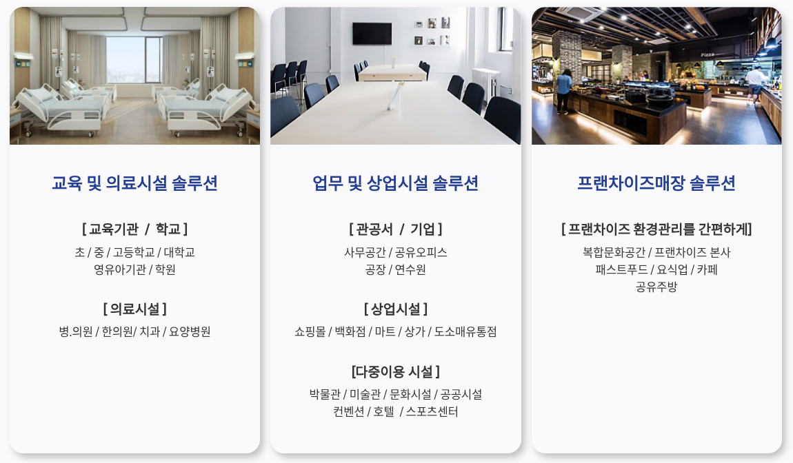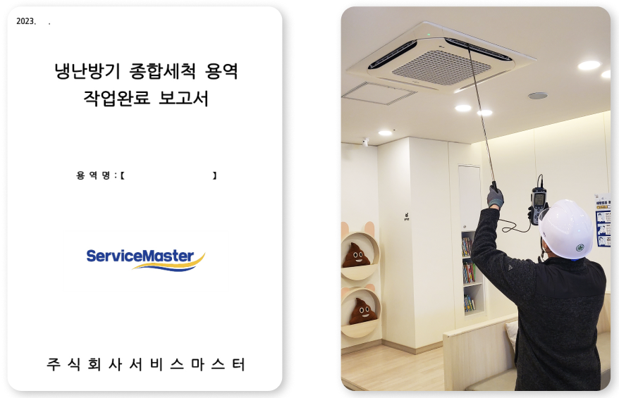 서비스마스터는 관공서, 교육 기관, 병원, 상업시설, F&B 공간 등 다양한 환경에서 대규모 에어컨 냉난방기 위생 관리를 전문으로 하는 기업입니다.