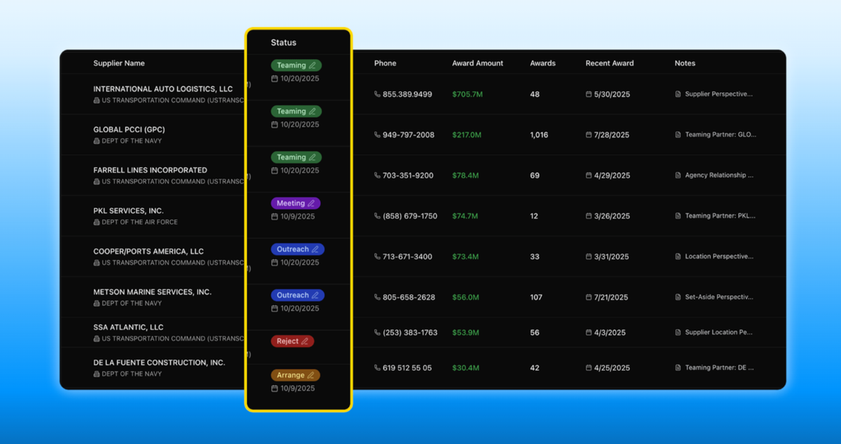 ๊ทธ๋์ ํด๋ผ์ด์ํธ๋ ๊ตญ๋ด์์ RFP๋ฅผ AI๋ก ๋ถ์ํด โ์ฐ๋ฆฌ ํ์ฌ์ ๋ง๋ ์ ์ฐฐโ์ ์ฐพ์์ฃผ๋ ๊ฒ์ฒ๋ผ, ๋ฏธ๊ตญ ์์ฅ์์๋ AI๊ฐ ์ฐ๋ฆฌ ํ์ฌ์ ๋ง๋ teaming ๊ธฐ์ ์ ์ฐพ์์ฃผ๋ ์์คํ ์ ๋ง๋ค์์ต๋๋ค. ๋ํ ๋จ์ํ ์ถ์ฒ์ ๋์ด, ์ ํฌ๊ฐ ์ง์ ๋ฏธ๊ตญ ํ์ง ๊ธฐ์ ์ ๋ฐ๊ตดํ๊ณ ๋งค์นญ๊น์ง ์ง์ํ๊ณ ์์ต๋๋ค.